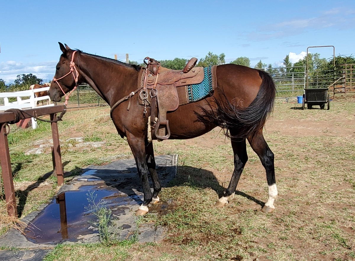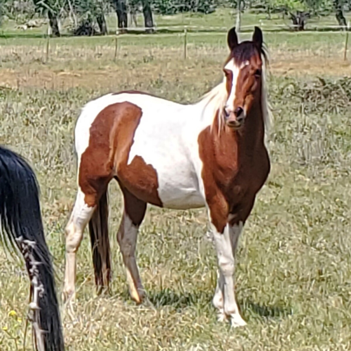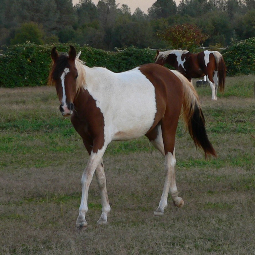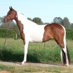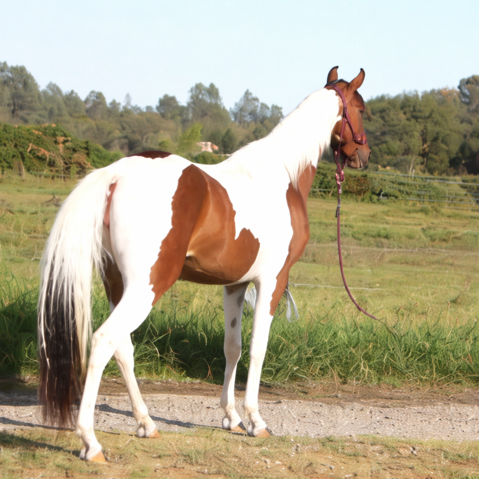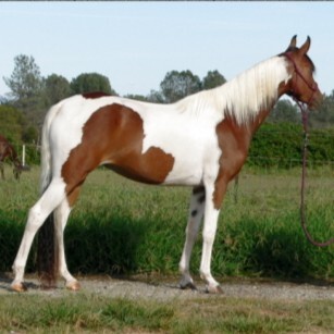 Bay and white pinto Saddlebred, Arabian cross mare